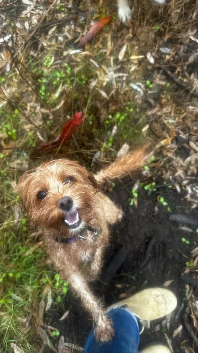 A happier fur child who’s had a big day out